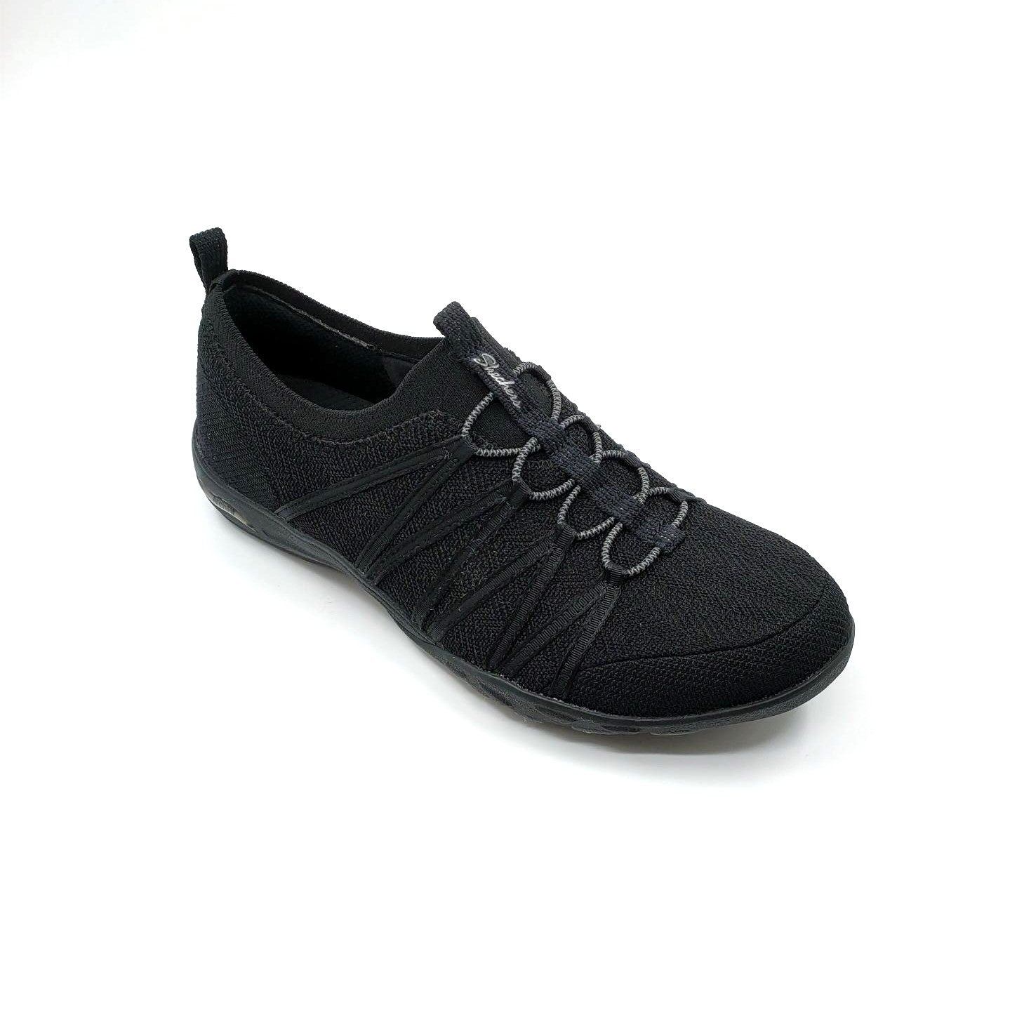 Skechers Arch Fit - Comfy Status Quo shoe. Featuring an athletic knit mesh fabric upper with elastic lace sneaker with removable Arch Fit insole and cushioned midsole.
